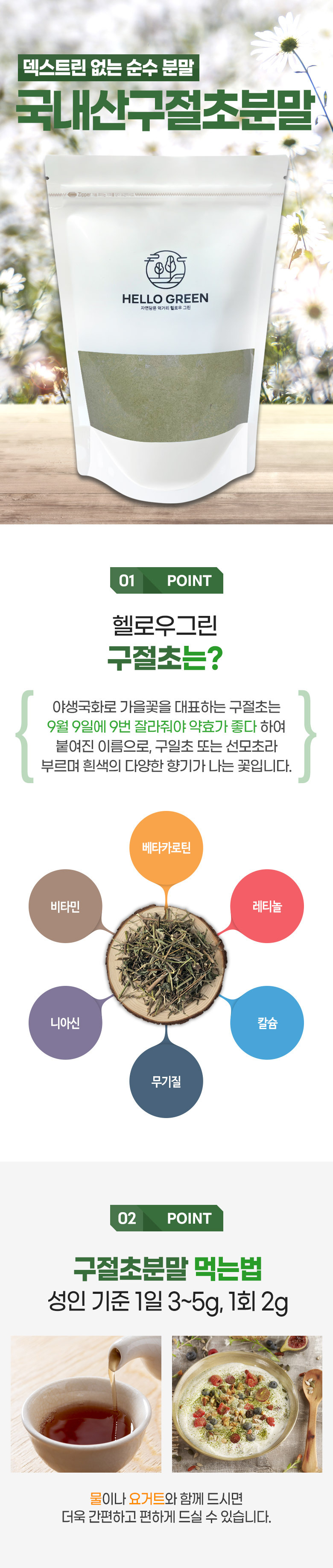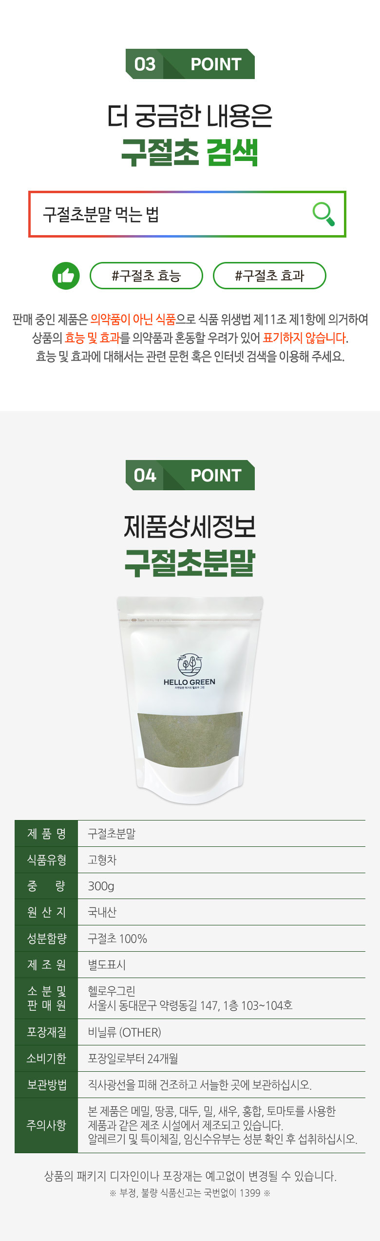 Hello Green Gujeolcho Powder 300g (pack) / 헬로우그린 구절초분말 300g(팩)