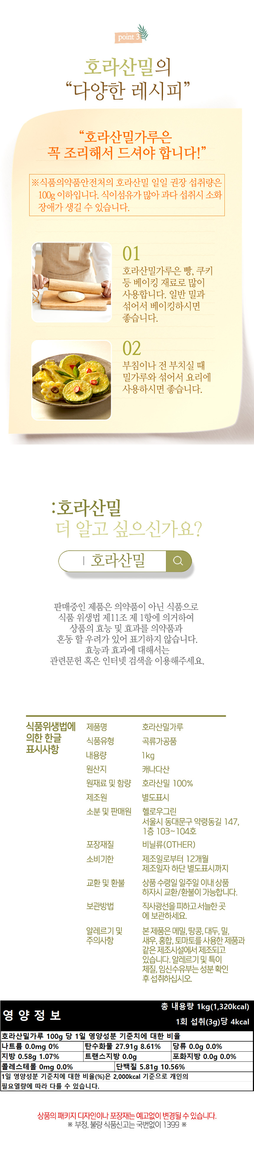 헬로우그린 호라산밀 가루 1kg(팩) 슈퍼곡물 (생)