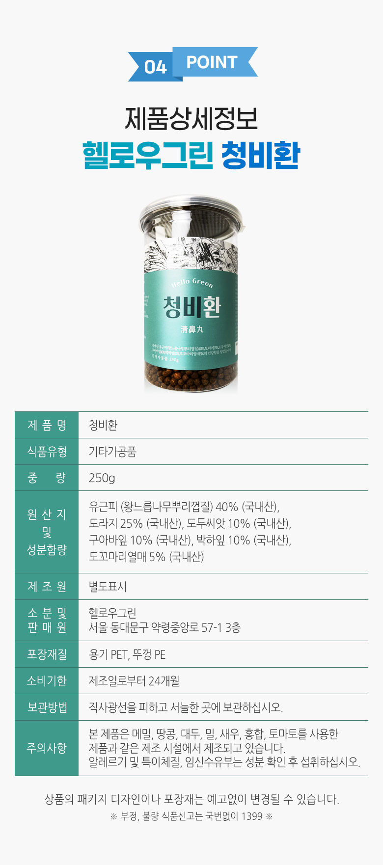 Hello Green [On Sale] Hello Green Green Bee Pill 250g / 헬로우 그린 [온세일]헬로우그린 청비환 250gX2(통) 총500g (유근피, 도라지, 박하잎, 구아바잎, 도두씨앗, 도꼬마리열매)