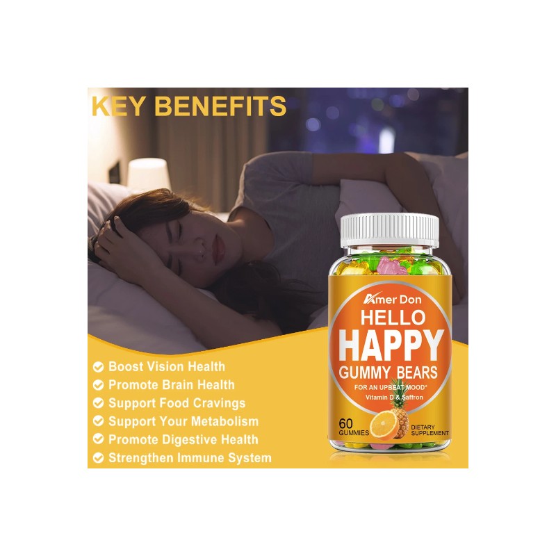 Hello Happy Gummies, Mood Balance Support, Vitamin D, Saffron, Adult Chew
