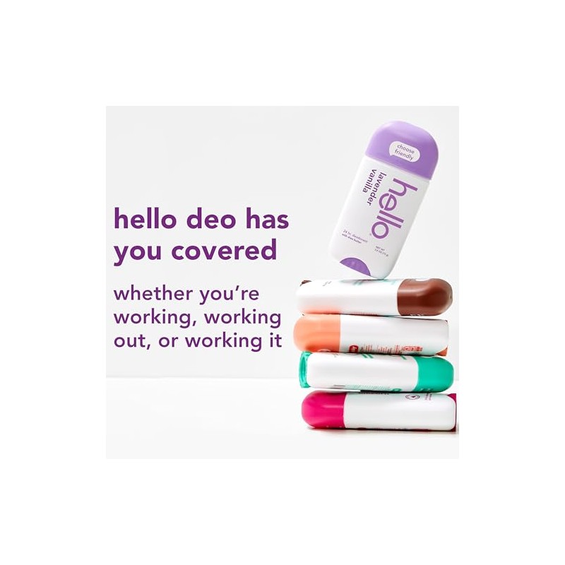 - WHAT I'M GETTING: Includes one 2.6 oz deodorant stick of hello Lavender Vanilla Aluminum Free Deodorant for Men and Women
