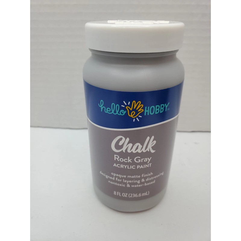 Introducing the high-quality Hello Hobby Chalk Rock Gray Acrylic Paint, perfect for your painting needs. This 8 fl oz paint is made in China and is designed to provide you with a smooth and consistent finish. The paint is ideal for use on various surfaces including wood, canvas, and paper.