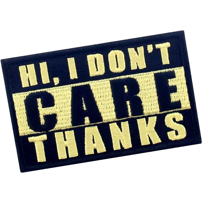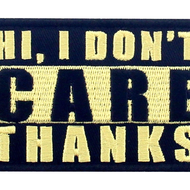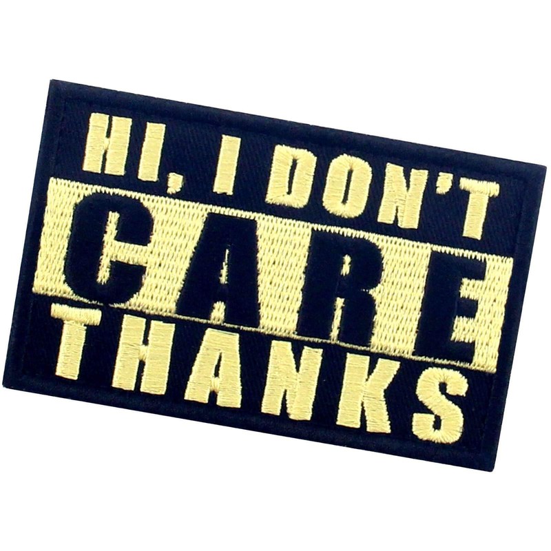 Hello, I don't care thank you Embroidered Patch with Hook and Loop Bands