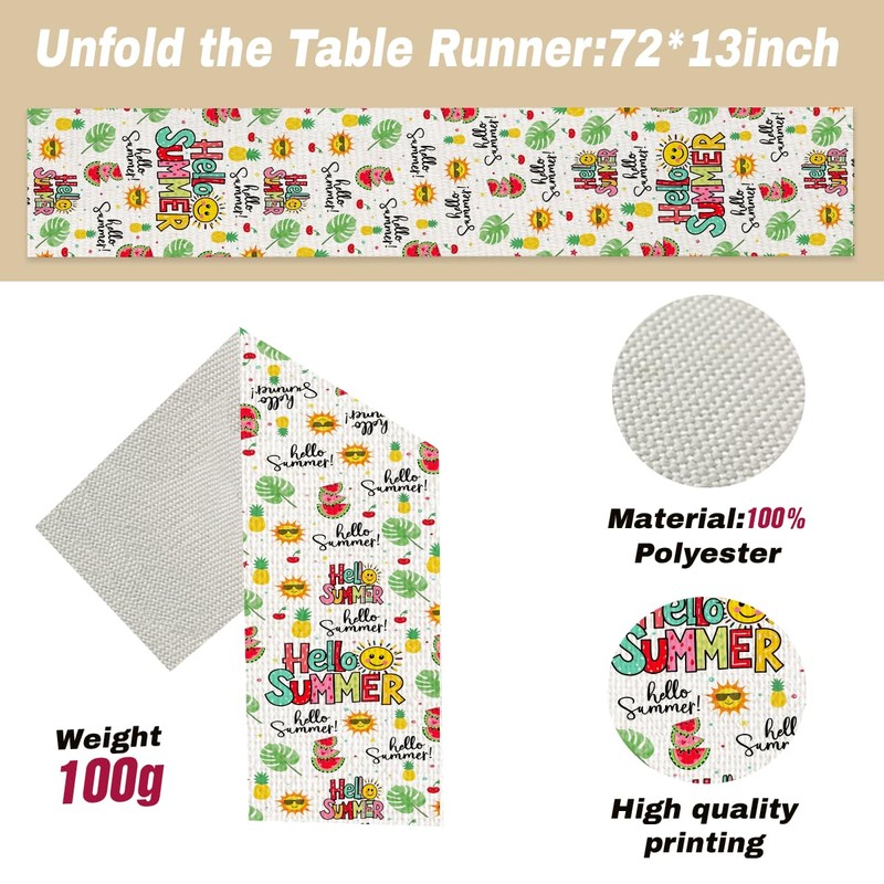 - Summer Table Runner: Table runner made of high-quality Linen material, 13x72 inch, which adds a touch of summer atmosphere to your dining table and provides soft cushioning for your tableware.