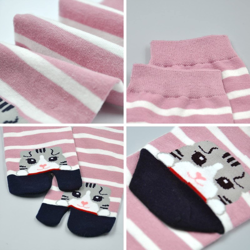 Hellomamma Tabi - Calcetines tobilleros de algodón con dos dedos divididos para mujer, 4 pares, Gato-animal 4 pares, 6-9.5