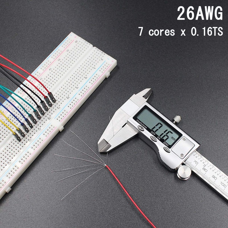 - HELLOTRONICS BRAND JUMPER WIRES: With capable producing and assembling ability, we supply these Jumper Wires in high quality with affordable prices. The REAL 26AWG wires comes with 7 cores x 0.16mm and cable material Phthalate Free, in RoHs compliance, makes it more safe to use.