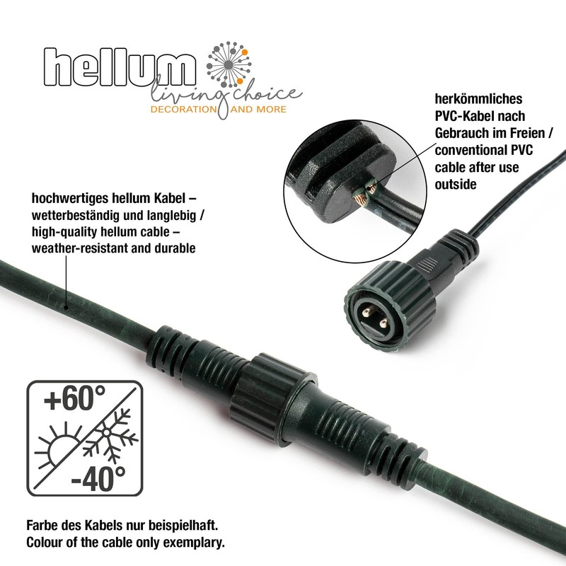 - Compatibility – The extendable hellum LED system professional fairy lights for outdoor use can only be extended with components of the same series (e.g. fairy lights, nets, ice light curtains, item number 555xxx).
