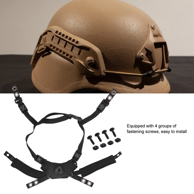 Helmet Chin Strap, Adjustable Tactical Helmet Dial Suspension System Chin Strap for, MICH, Wendy, Universal Comfort Helmet Accessory Replacement with Bolts and Screws (Black)