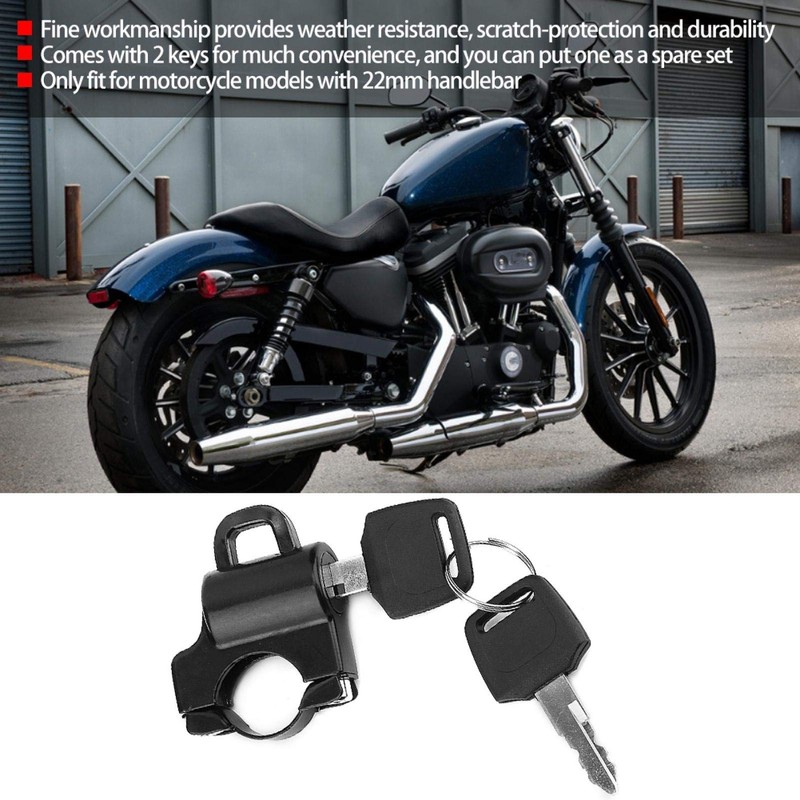 Helmet Lock, 22 mm Universal Motorcycle Handlebar Helmet Lock Safety Lock Handlebar Padlock with 2 Keys (Black)
