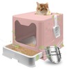 Helntova Cat Litter Box, Foldable Enclosed Cat Litter Box with Lid, Large Top Exit Design with Pull-Out Drawer & Scoop, Easy Clean Odor Control -Pink