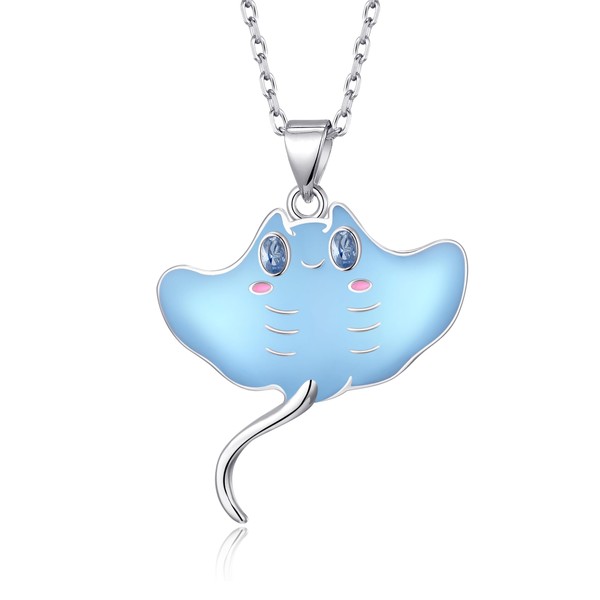 HELORET - Collar con colgante de mantarraya, diseño de animales del mar del océano, manta raya, regalo para los amantes de las mantarrayas, joyería de rayas, Chapado en oro, Circonia cúbica, Azul
