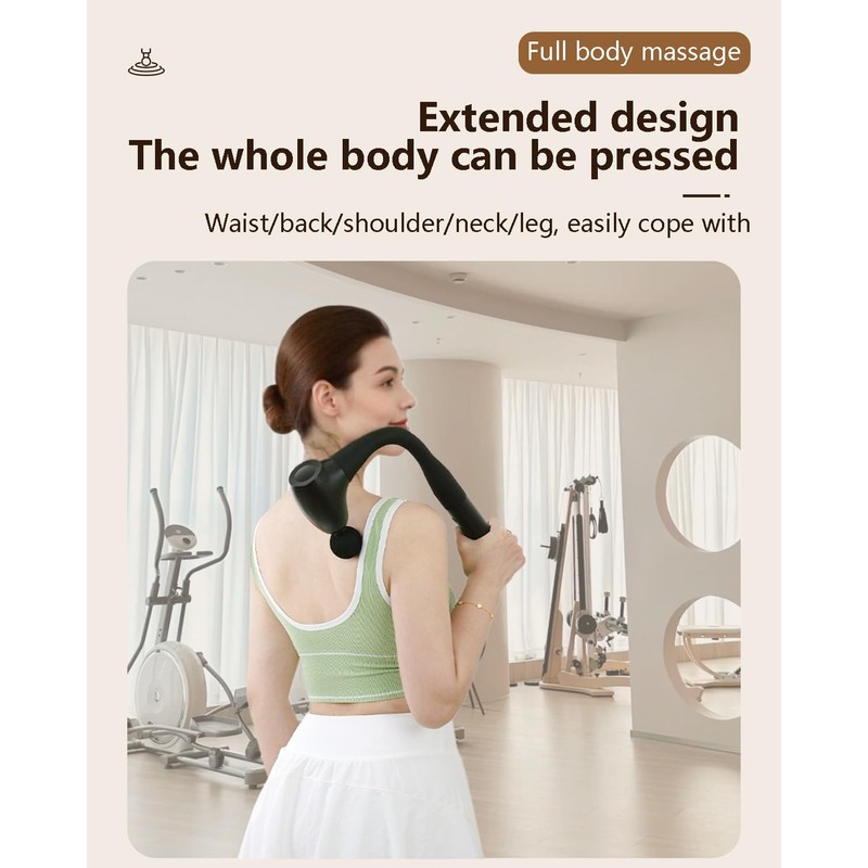 - ✨ MASSAGE YOUR BACK EFFORTLESSLY: Our Massage Gun features an easy-to-grip elongated handle with an ergonomic 120° curve that allows you to effortlessly reach and deeply massage hard-to-reach areas such as the shoulders, neck, lumbar area, back and feet, reducing arm fatigue and awkward angles for a more comfortable and effective recovery workout. No more struggling to twist and turn your body or needing help - you can enjoy a professional-grade massage on any part of your body all by yourself.