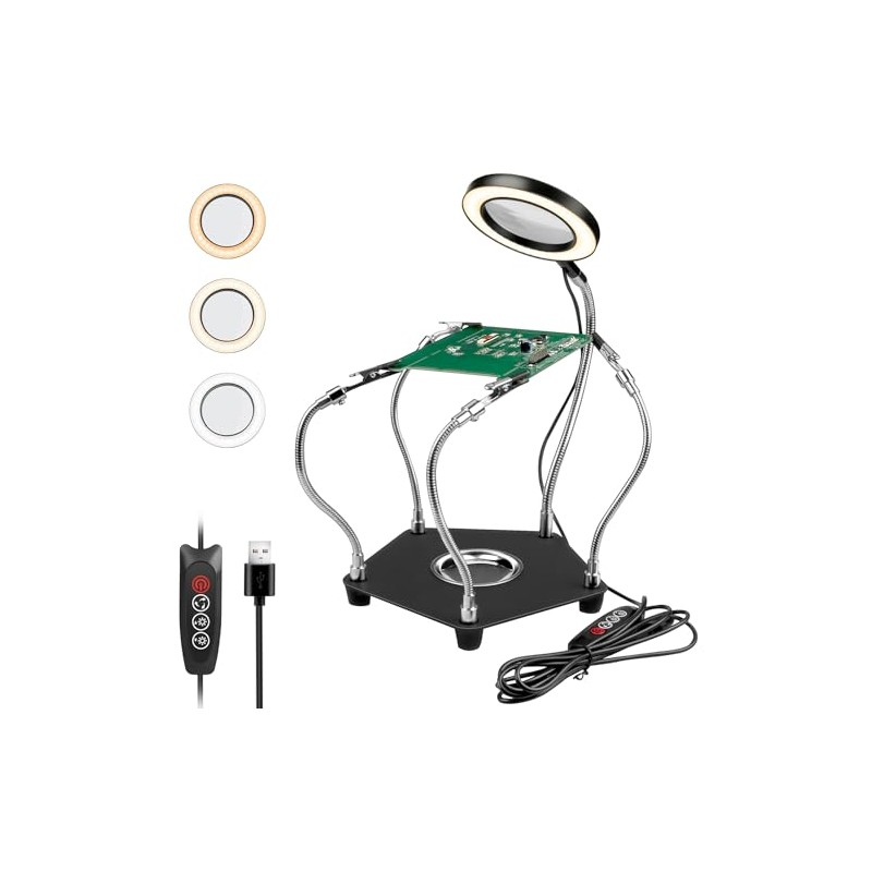 Helping Hands Soldering Station, Lytool Third Hand Soldering Tool with 3X Magnifying Glass Dimmable LED, Flexible Helping Hands Soldering with 4 Flexible for Welding Repair Hobby DIY
