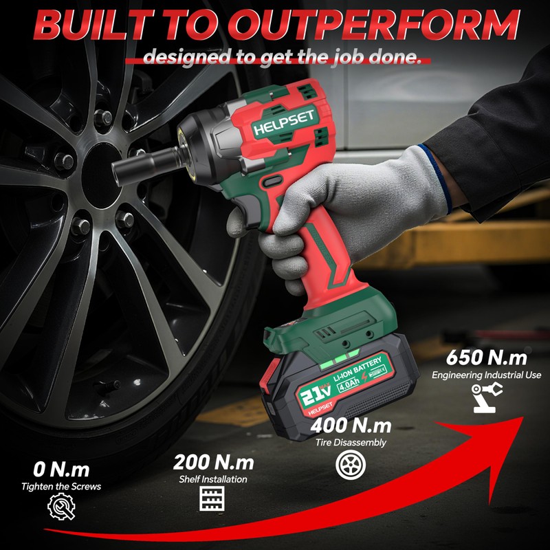 - 650N.m (480Ft.lb) High Torque – This High Torque Impact Wrench Handles Heavy-Duty Jobs: This 1/2 impact wrench delivers 650N.m of max torque, making it ideal for loosening rusted bolts, tightening large fasteners, or servicing car/RV tires. Whether you’re a pro or DIYer, this high torque impact wrench crushes tough tasks that underpowered tools can’t handle.