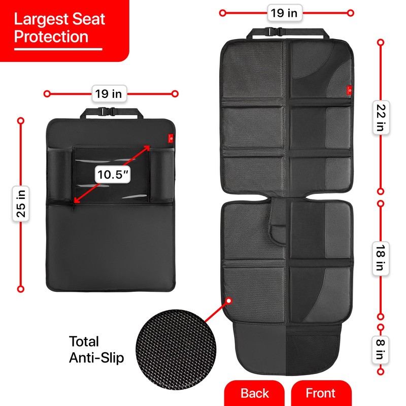 - Car Seat Guard for Parents - This anti-slip car seat protector and multi-pocket back seat protector will keep your car neat and tidy during short- and long-distance trips with your baby or kid, so that you can enjoy your trip.