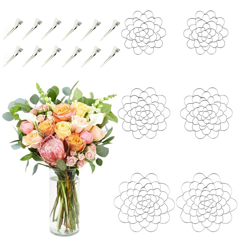 - Floral Grid for Vase Add Fixing Clips - In order to solve the problem that the flower frog wire arranger is unstable in the vase mouth after putting flowers on it, the 3 Pcs flower arrangement holder we have added 6 fixing clips, 6 Pcs flower arrangement holder we have added 12 fixing clips. Using 2 clips to fix the ends of the flower frog lid after putting the flower arrangement holder in the mouth of the vase, you can prevent the movement of the flower arranger twist.