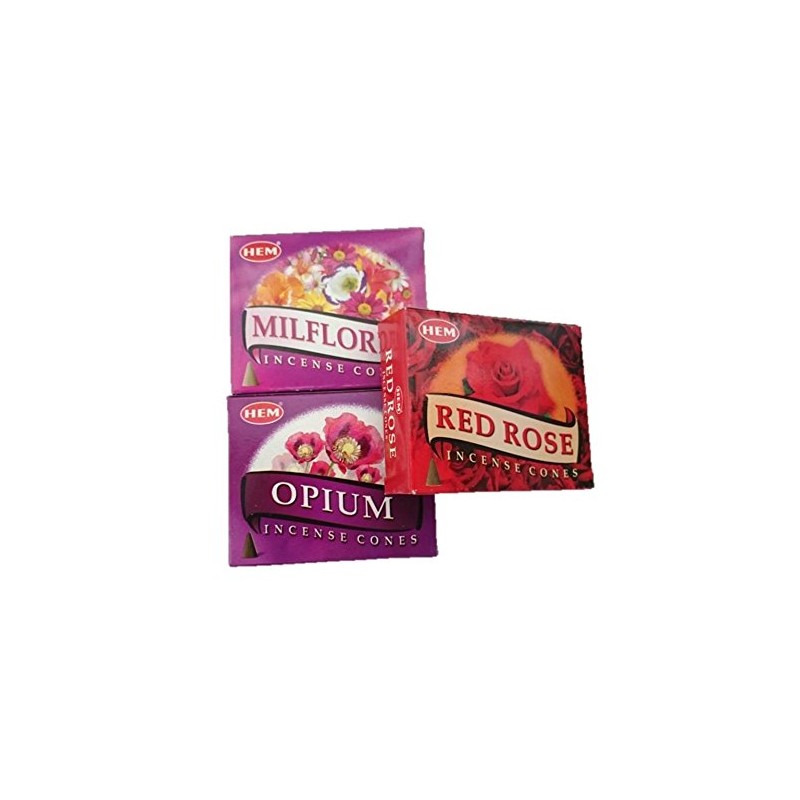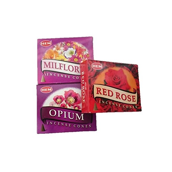HEM Incense Cones Mill Flawless Opium Red Rose Cone Set of 3