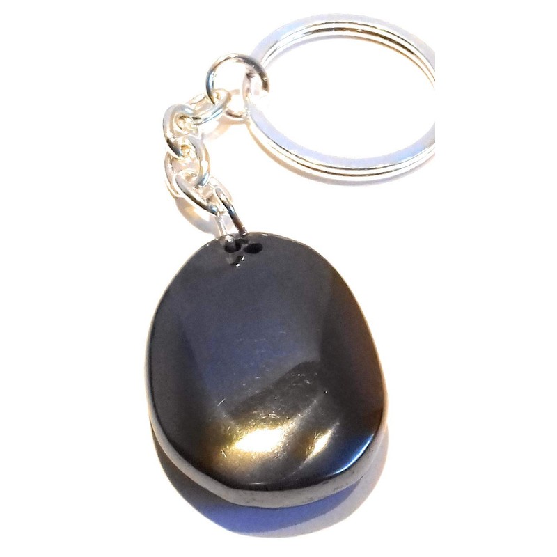 Hematite Crystal Tumblestone Keyring - Focus, Willpower, Courage, Confidence, Balance, Protection Chakra Base/Root - Hematite Stone Key ring