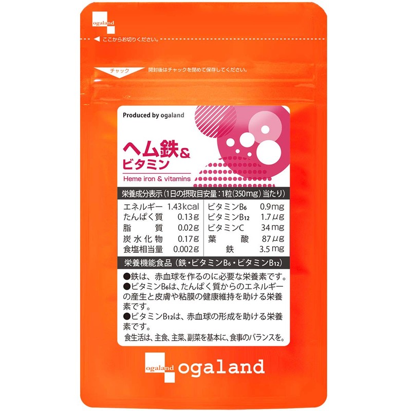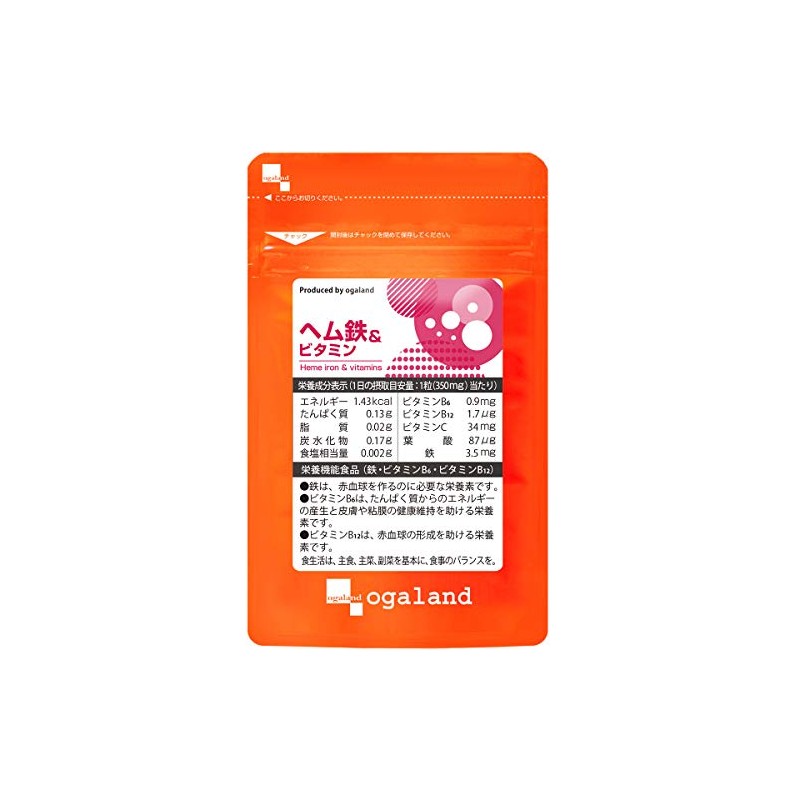 - Product Details: Main ingredients: (per capsule). Hemmed iron (derived from pig); 175 mg (iron 3.5 mg) / Vitamin C 34 mg / Vitamin B6 0.9 mg / Folic acid 87 μg / Vitamin B12 1.7 μg. *Contains approximately 1 month (90 days)