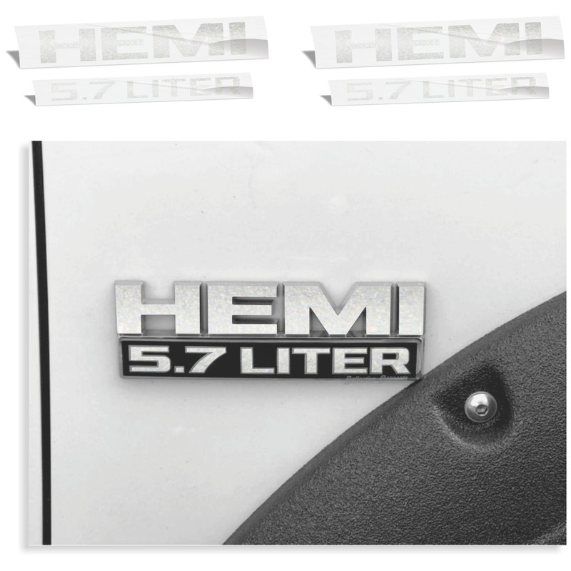 - Sticks onto the front face of the lettering located on the existing emblem. Covers the front face of the HEMI and the red of the 5.7 LITER.