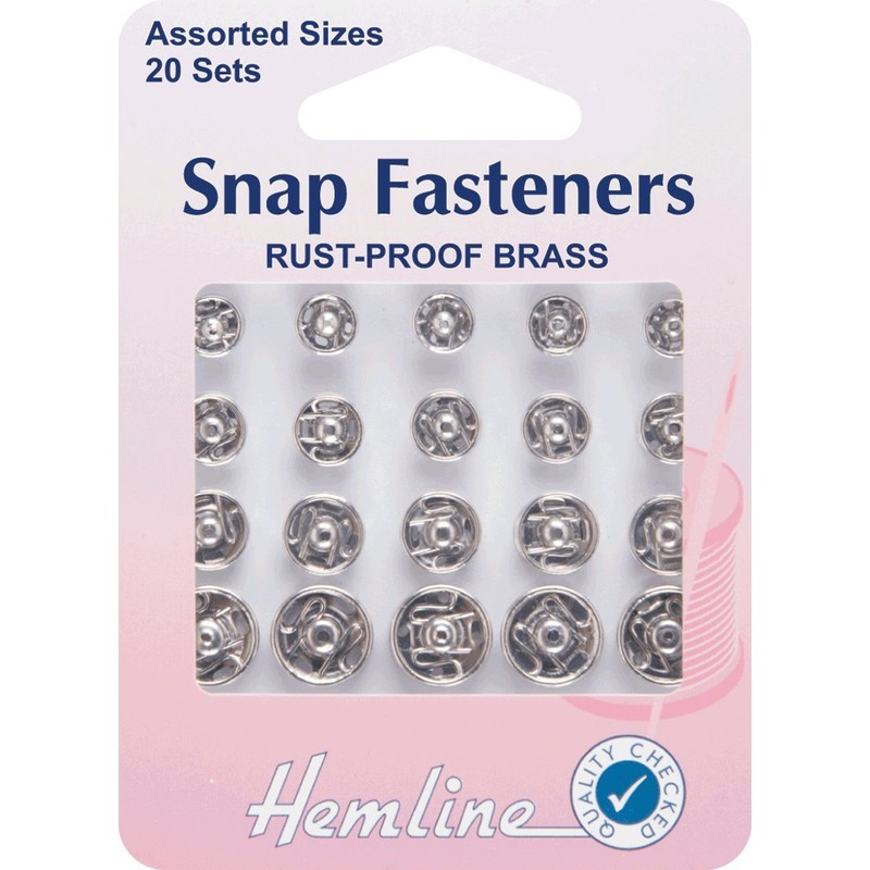 Hemline H420.99 Nickel Brass Rust Proof Sew On Snap Fasteners 6,7,9,11mm 20 Set