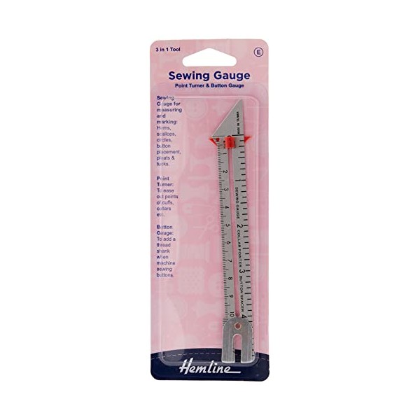 Hemline Sewing Knitting Gauge Point Turner & Button Gauge 3 Function Imperial Metric mm H258