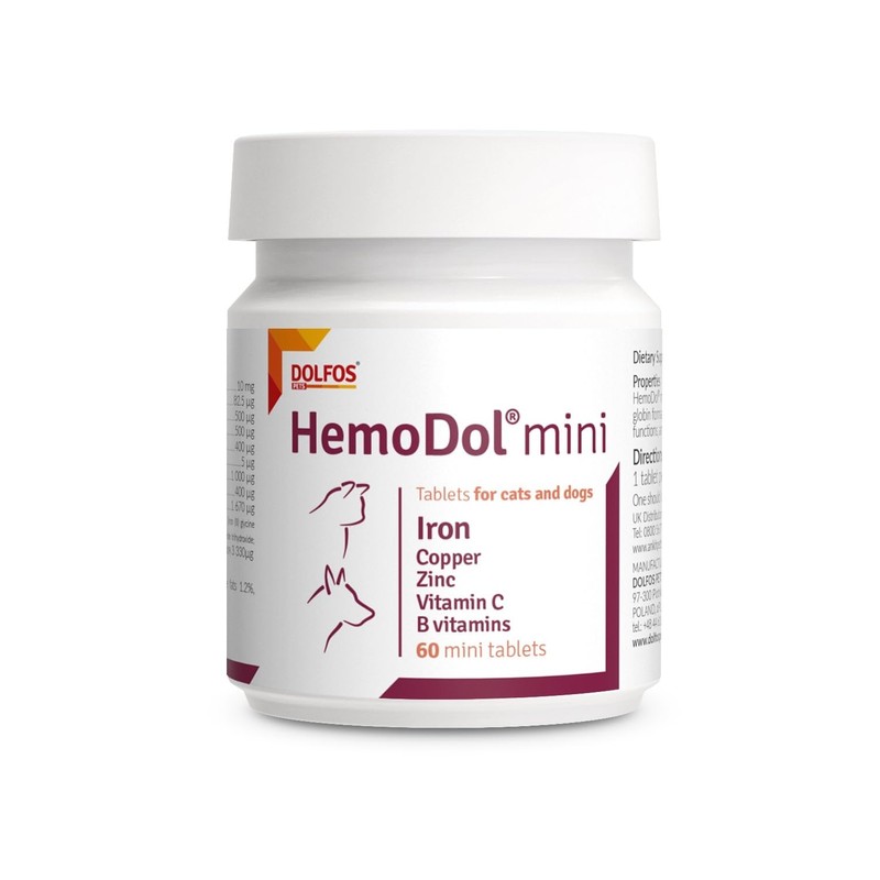 HemoDol 60 mini tablets Iron Support for Dogs and Cats Copper Zinc B Vitamins