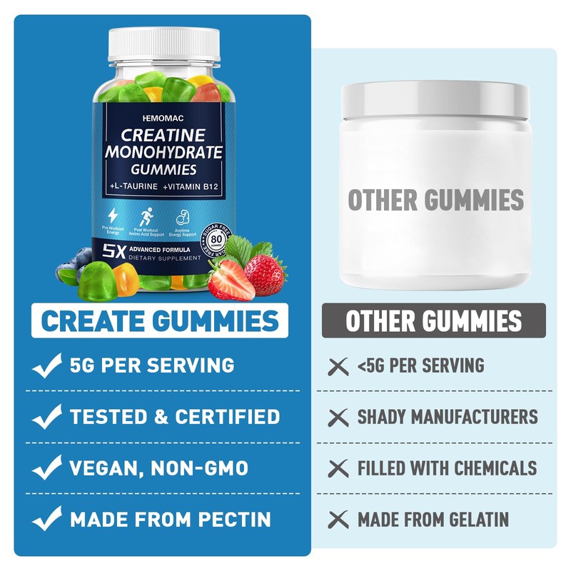 HEMOMAC Creatine Monohydrate Gummies for Men Easy to Chew Tamarind