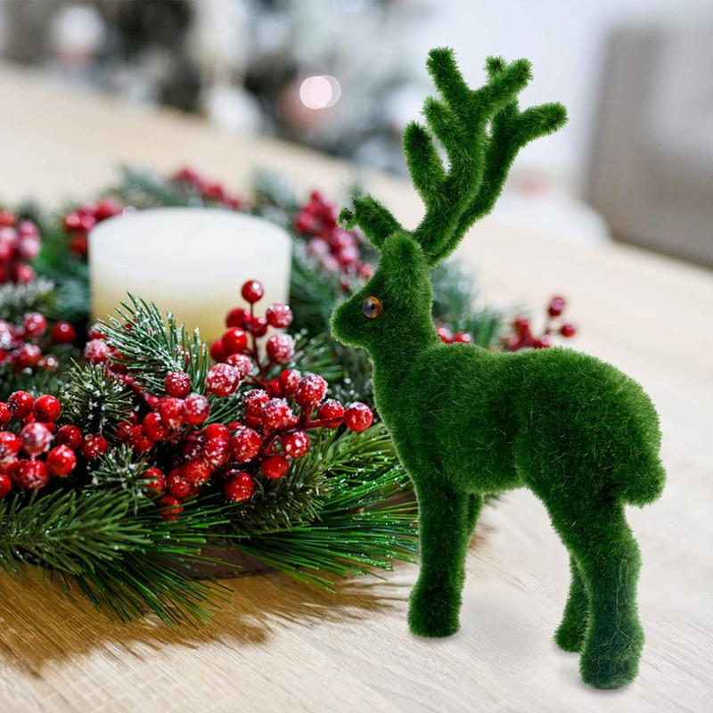 HEMOTON Christmas Reindeer Ornament Artificial Moss Flocked Animal Figurines Turf Grass Deer Model for Xmas Holiday Table Centerpiece Decoration Style 2