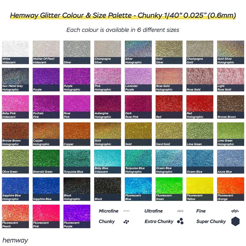 - Colourfast, Fade Resistant & Solvent Resistant - high colour pigment ratio and premium raw materials means this glitter will not leak any colour or fade over time ; non-bleed and non-rust