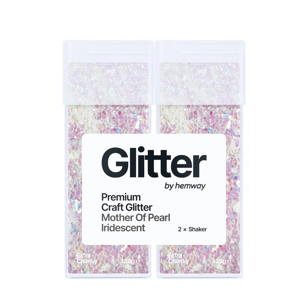 Hemway Premium Glitter Shakers - Mother of Pearl Iridescent | Extra Chunky Metallic Flake for Resin & Epoxy Crafts | Craft Supplies for Tumblers, Festival, Face, Body, Eye & Nail Art | 130 g (2 Pack)