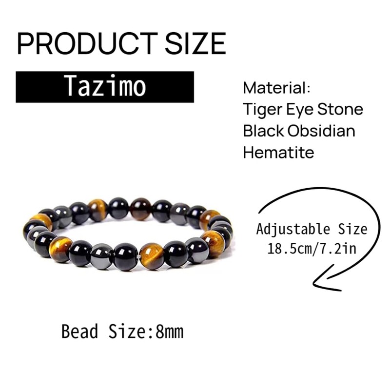 Product Description:Elevate your style and enhance your well-being with the Hemys Hematite Protection Bracelet from Tazimo.This exquisite set of two beaded bracelets features a combination of natural stones, including hematite, tiger eye,and black obsidian, designed to provide protection, promote healing, and attract good luck. Perfect for both men and women, these bracelets make an ideal gift for any occasion,combining fashion with functionality.
