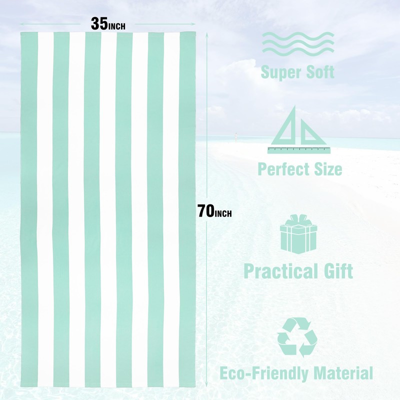 HENBAY HENBAY Large Oversized Beach Towel - 35 x 70 Inch Microfiber Pool Towel, Aqua Striped Quick Dry Cabana Swim Towel