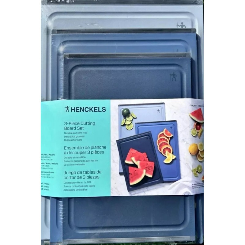- COMPLETE 3-PIECE SET: This Henckels cutting board set includes three essential sizes: small (perfect for quick tasks), medium (ideal for everyday chopping), and large (for handling bigger prep jobs). Cover all your cutting needs with one convenient set.