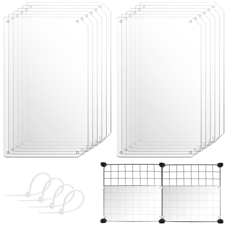 HeNdShe Cage Liner Guard 13.8'' x 8.4'' Extra Large, Pack of 12, Clear Side Edge Lining with Holes and Zip Ties, Fits Wire Cages for Rabbits, Guinea Pigs, Ferrets, Birds and Small Animals