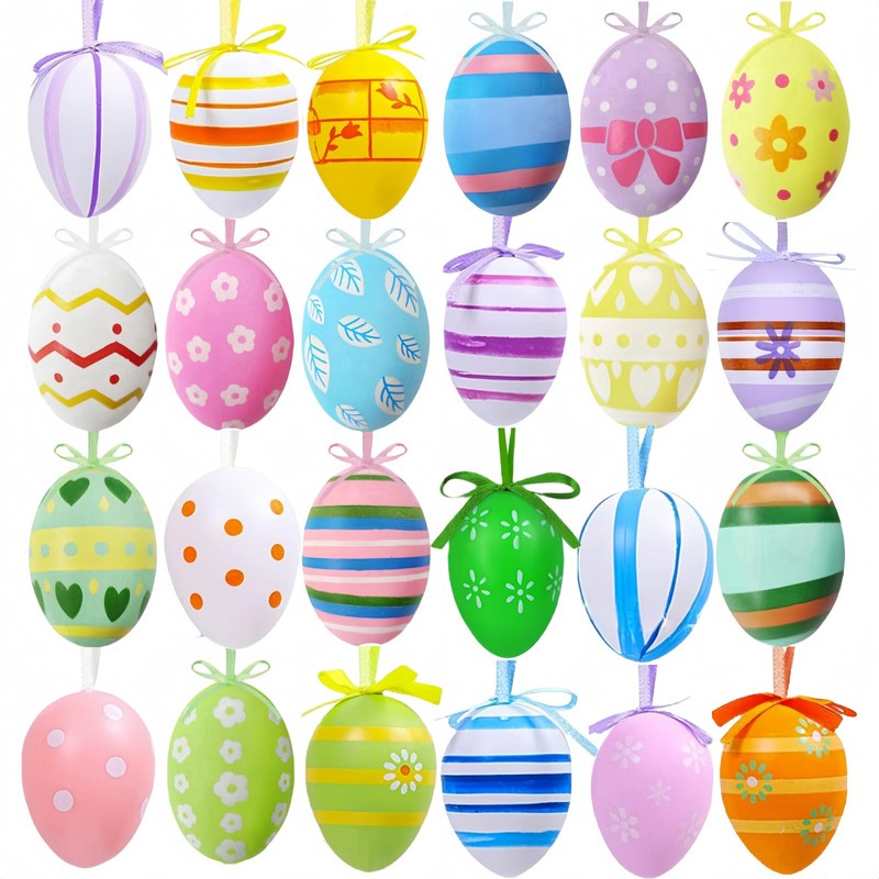 - Plastic Easter eggs for hanging: Easter egg decoration, each Easter egg decoration comes with a colourful ribbon that can be hung anywhere; these colourful Easter eggs for hanging are a great decoration to emphasise the Easter mood