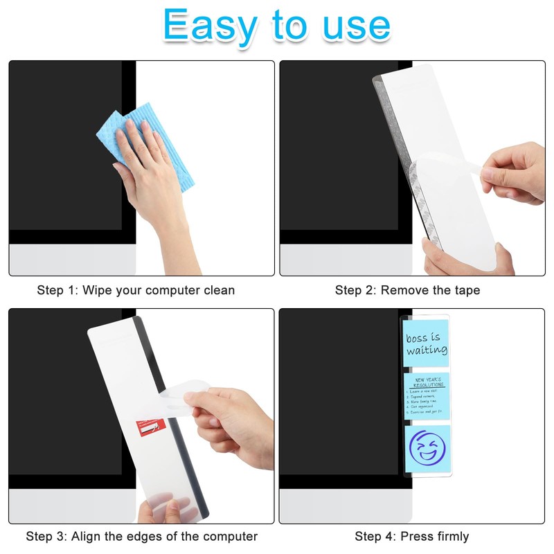 - Easy to use: our memo board desk is easy to use. You only need to peel off the protective film on the back of the sticky note pad, wipe the dust from the edge of your computer monitor and then stick the memo board to the left or right side of your computer