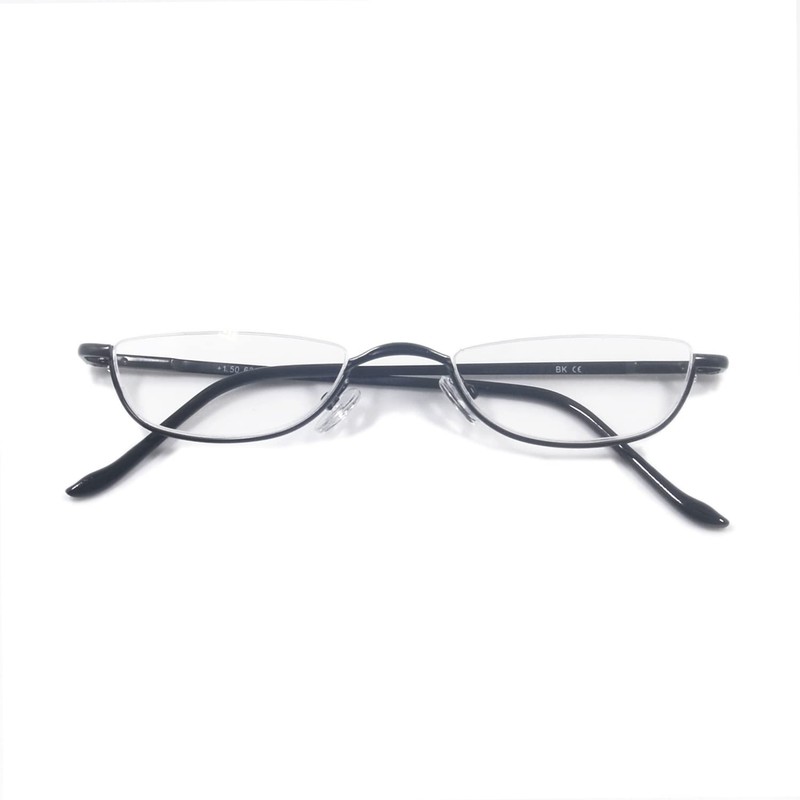 [Henghao] 老眼鏡 10度数選択可能 半月型メタルフレーム メガネ 携帯用 おしゃれ リーディンググラス シニアグラス H6020 (ブラック, 3.00)