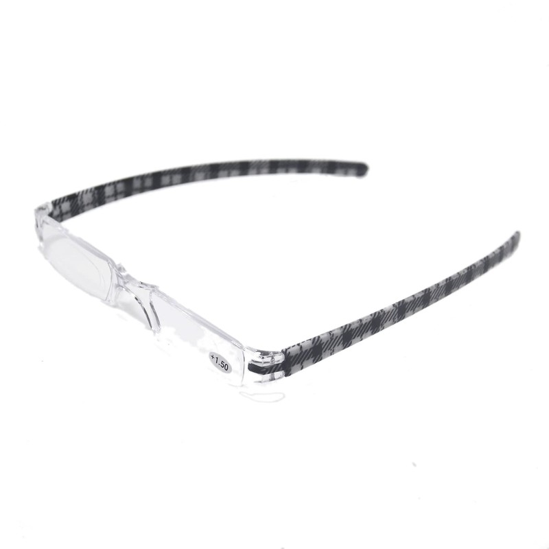 [Henghao] 携帯用 超軽量リムレス 老眼鏡 8色選択可能 シニアグラス おしゃれ リーディンググラス 専用ケース付 H6035 (ブラック チェック柄, 2.50)
