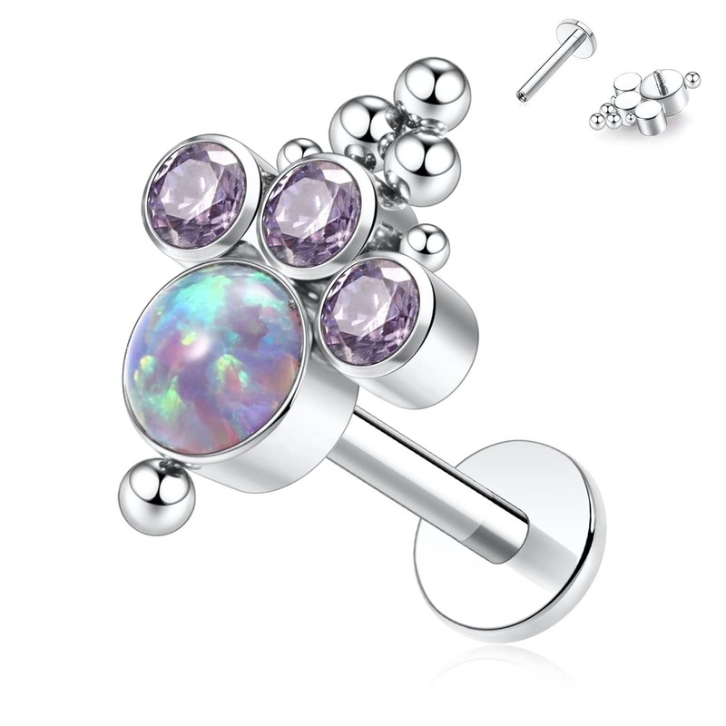 - ✿Thickness & Color: 16G (1.2mm); Barbell Length: 5/16" (8mm); Opal Color: Purple, Color : Silver Perfect size for women and men as daily piercings. The lip stud is an ideal gift for yourself, girlfriends, girlfriends and mothers.