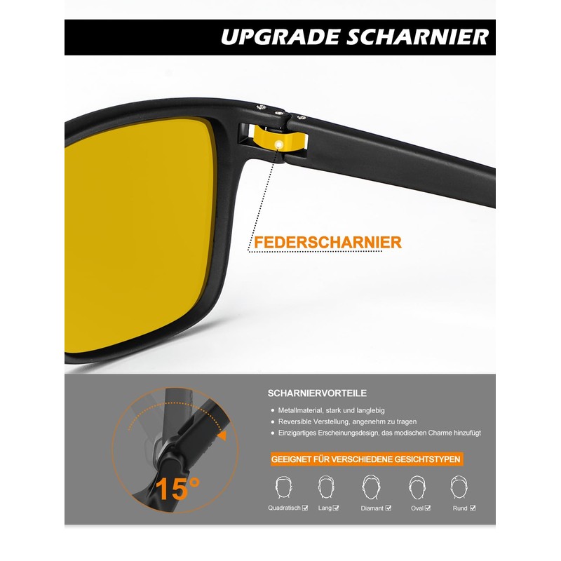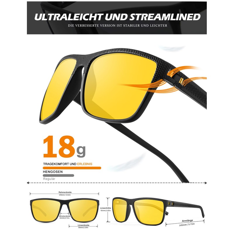 - Polarised sunglasses for men and women: square sunglasses with professionally designed frames, high-quality PC lenses, flexible and strong hinges that can be adapted to a variety of face shapes. These sports glasses are durable, well made and offer a clear vision. These polarised sunglasses have everything you could want from sunglasses for men and women