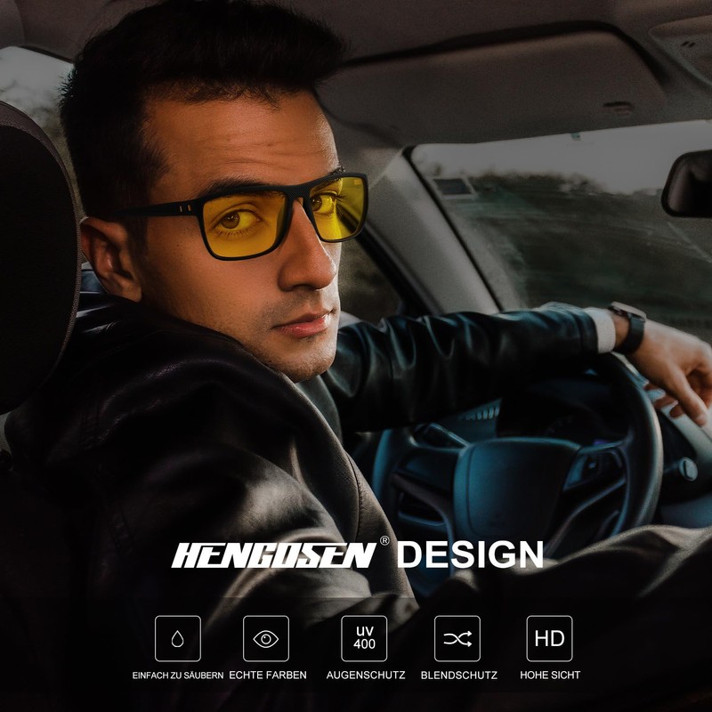 - UV400 protection sports sunglasses: The HENGOSEN men's polarised sunglasses provide polarised light and UV400 protection to avoid reflected and diffused glare. The UV protective coating of the men's sunglasses effectively blocks UVA and UVB rays. Maintain your sense of style while protecting your eyes.
