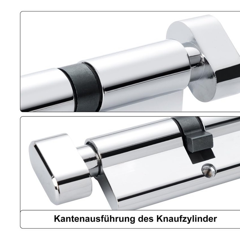 - Lock cylinder with knob 30 30: lock cylinder with knob: brass, lock box: zinc alloy, surface: chromed. Key: iron. Cylinder length approx. 6 cm x 1.68 cm x 3.28 cm, key 5 pieces, long screw approx. 8 cm, short screw approx. 5.8 cm