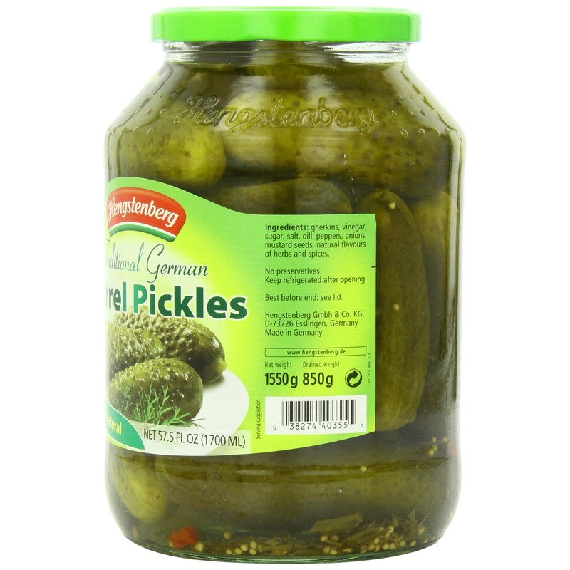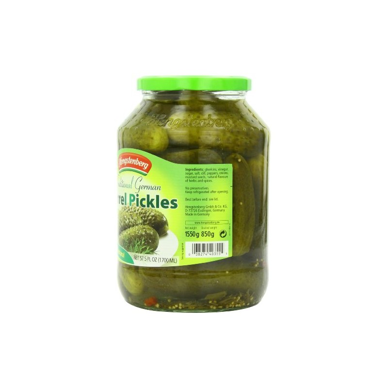 Hengstenberg is Germany's leader in pickles and sauerkraut. At Hengstenberg, all vegetables are processed and packaged within hours of harvesting to ensure a fresh, crunchy, and delicious product. This pairs well with salads, sandwiches, sausages, meat dishes, and more! These Hengstenberg Crunchy Gherkins contain no saturated fat, cholesterol, or preservatives. They are also all natural and gluten free! Product of Germany.