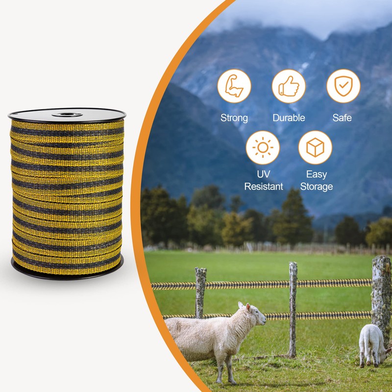 - Easy to Use: This electric fence polytape is lightweight, easy to install, repair, splice, and rewind in the farm or ranch field, suitable for horse fencing, electric fence for cattle, dogs, goats, deer, cow, sheep, pigs, skunk, raccoon, hogs and other animals