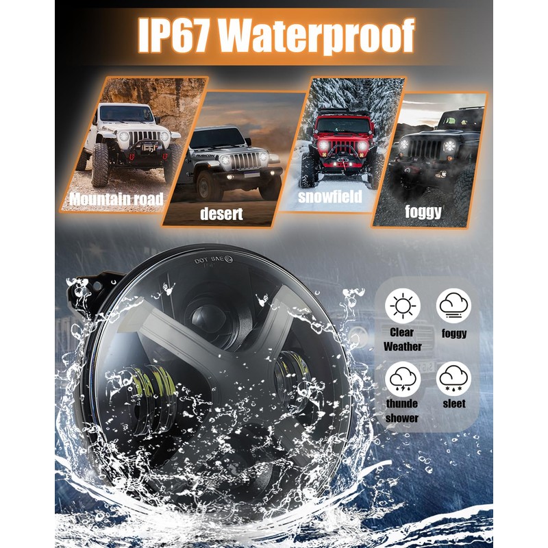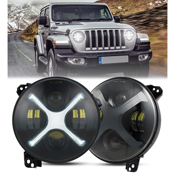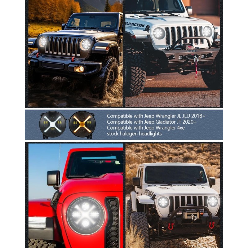 • UPGRADE: 9 inch LED Headlights with "X-Shape" White DRL Amber Turn Signal, Compatible with 2018-2025 Jeep Wrangler JL/ 4xe/ Jeep Gladiator JT (ONLY fits JL/JT with stock halogen headlights), give your car a sporty look, make your vehicle a unique stylish