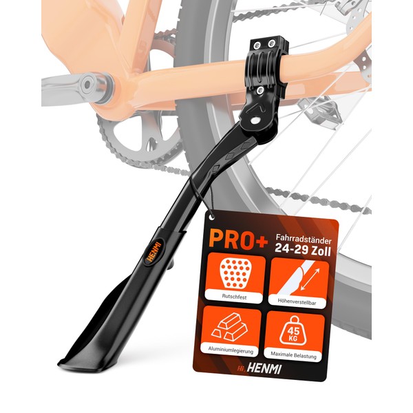 HENMI Bicycle Stand 24-29 Inch Universal Bicycle Stand Pro+ Aluminium Alloy Side Stand Rear Stand with Non-Slip Rubber Foot Mountain Bike Road Bike E-Bike City Bike Trekking Bike