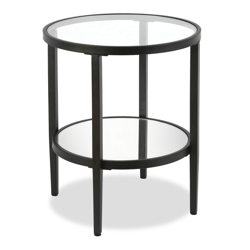 Henn&Hart Modern Round Side Table with Glass Top in Blackened Bronze