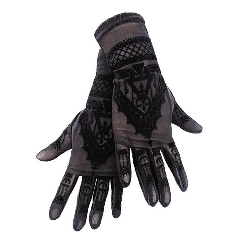 Restyle Henna Gloves Womens Goth Lolita Accessory Mesh Gloves with Velvet Mehndi Pattern