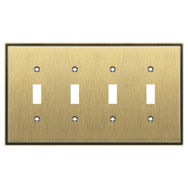 Henne Bery Soft Modern Decorative Wall Plate Switch Plate Outlet Cover (Quad Toggle, Antique Brass)